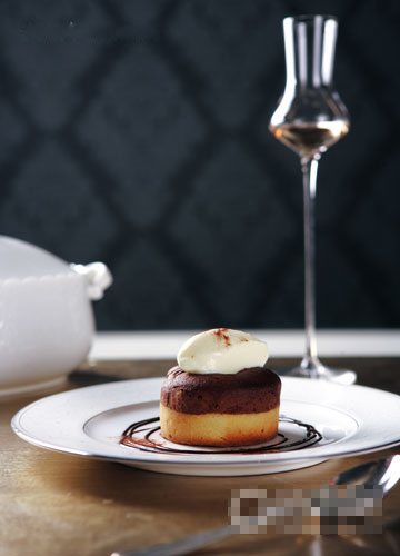 黑巧克力搭配金万力甜酒,甜芝士冰霜
