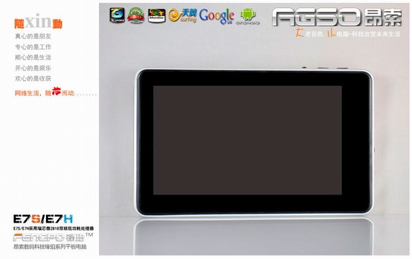 屏幕有2种可供选择,型号为E7H,配备的是7寸电容式触摸屏(最多5点触摸),这和iPad上触摸感觉类似,有更好的体验。另一款E7S,为普通电阻屏,是用指尖来操作屏幕,这是目前大部分中低价位平板电脑的标配。