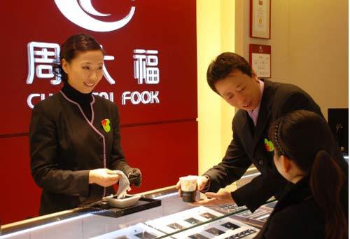 宽敞时尚的周大福,以亲切热诚的服务,优质超卓的货品,以及国际级管理水平获得顾客、中外媒体以及珠宝业界的一致赞赏。多年来周大福获奖无数, 包括连续六年获得中国500强名誉,也是唯一一家珠宝店跻身100强之列;连续七年荣获“同类产品市场综合占有率第一位”荣誉;更获美国着名媒体《读者文摘》颁发信誉品牌白金奖及信誉至尊奖;并被选为中国市场最受欢迎世界着名品牌奢侈品150强。 作为大中华地区首屈一指的闪烁珠宝品牌,周大福不断从店铺外观、员工仪容及服务质量等作出检讨及改善,上下一心,做到为顾客提供真诚,信赖,专业,愉快,永恒铭记的服务。