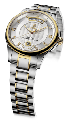 布拉克系列天文台表把布拉克式的“立体主义”精髓发挥到极致,设计更具特色,表盘包含梯形窗式周历、圆形窗式日历,箭形、弧形底纹等多种图形,包罗万有的同时很好地突出各种图形的线条美,并有中心汇聚感,给人舒服、平稳、大气的感觉,加上天然钻石刻度,洋溢着高层次艺术气息。
