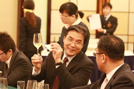 几位品酒师不时地晃动杯中的红酒,不时地闻着香气,不时地品着红酒,偶尔也相互交流一下, “这款是2003年的”、 “这个口味比较涩”、“这个味道很香”……开元的几位品酒嘉宾一边品酒,一边看看自己的选择是否与品酒师的打分结果相同,陈妙林董事长说: “我们也在不断学习嘛。”陈灿荣总裁说: “只有对比,才能分出哪个酒好,哪个酒适合。”陈妙强总经理说:“我们不但要会喝酒,更应该会品酒,然后选择几款匹配开元酒店企业文化和品牌形象的红酒做店酒,让宾客在开元喝酒,喝出品位。”