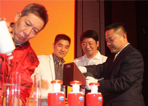 晚宴现场拍卖的茅台红钻酒,由茅台集团高级资深调酒师申正强先生现场亲自勾调,同时还邀请了中宣部改革办高书生主任以及同一首歌文化传播集团董事长张嘉豪先生作为品酒嘉宾,共同见证。