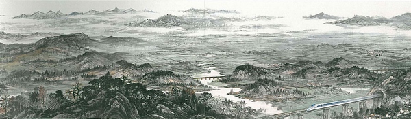 ● “京沪高铁揽胜图” 首度在港展出,此卷长约80米,寛1.45米反映当代中国高铁先进建设成就与祖国壮美山川的史诗般山水画巨幅长卷。