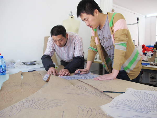 卜柯文透露:“这件衣服的主题是仙鹤,颜色方面选择了代表中国的大红色,我们觉得这是非常有力量有意义的一个颜色。其实这件礼服早在两年前就开始有了想法要做,因为实在是元素太多,手工量非常大,耗工耗时,所以进展比较缓慢和艰难。最终我们在制作上花了相当多的时间,基本上是70多个工人,用了四个多月时间完成。衣服上的每一片羽毛都是按照真实动物羽毛生长方向1:1缝制的,而且采用的也是一种新的刺绣方法,因为衣服包含了很多元素,要摆清各元素的主次,做好布局,的确满复杂的。”