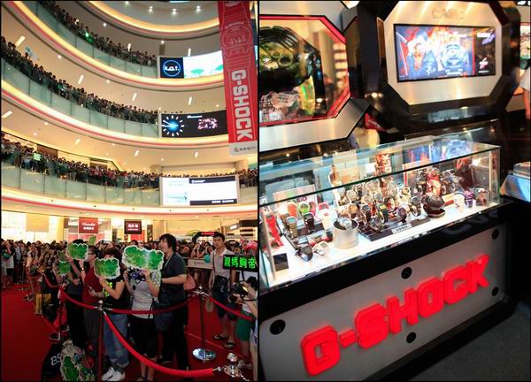 (G-SHOCK与周笔畅魅力无穷,吸引了大批Fans到场,连二三四楼的围栏位置也不放过)