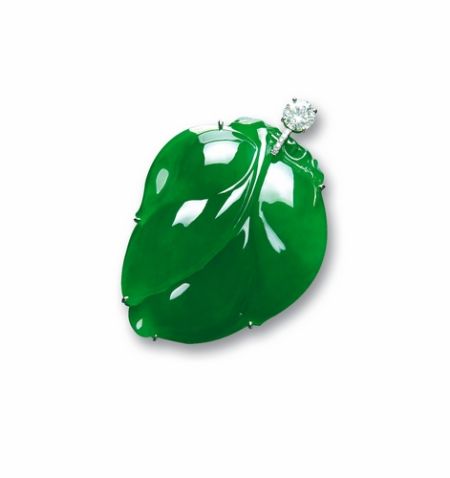 6月6日下午,北京保利在2011春拍中首次推出“春华熠彩――首届名贵珠宝与翡翠专场”拍卖,该专场总成交额达1.4亿元。 “天然翡翠绿叶挂坠”也以1046.5万元成交。
