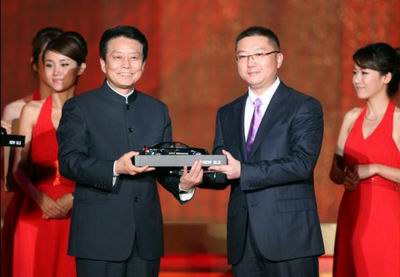 上海通用汽车副总经理蔡宾向黄建新导演赠送凯迪拉克SLS赛威纪念版车模