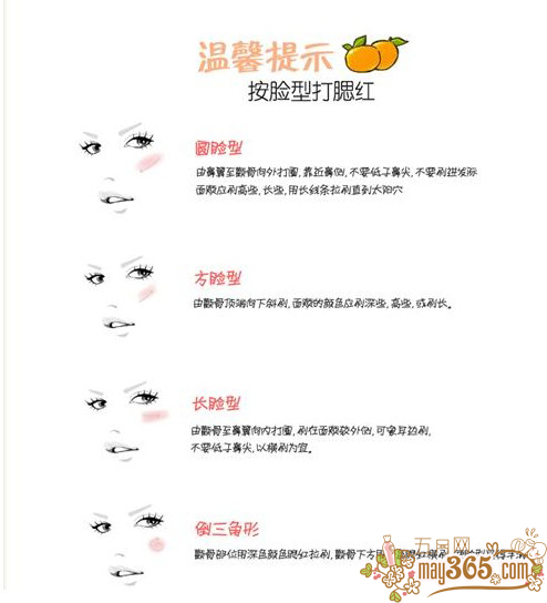 好的皮肤会透着健康的光泽感和自然的红润感,这样的皮肤才会呈现出水嫩的感觉。而腮红的点缀会让你的肌肤变成婴儿般粉嫩。2011年流行“夹心”腮红,能使脸部立体同时又有小脸效果,任何脸型都非常适用,使用Vinistyle娇嫩颊彩珍珠球可以轻松打造出。