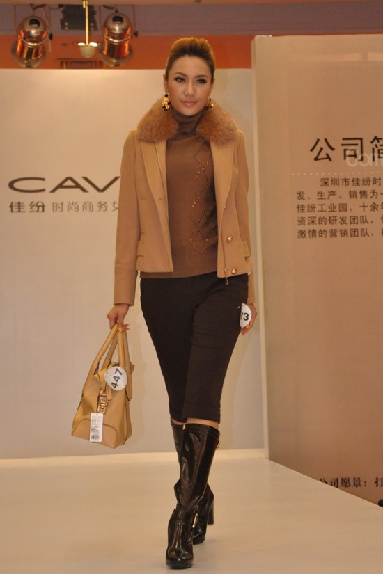 “CAVEN 佳纷”2011秋冬新品发布会——诠释职业女性时尚优雅骑士风裤装的出现,是职业女装最重要的一个转变,行动方便、潇洒的马裤,这一两年再度回潮,在秋冬季节搭配长短靴和小西装,适合上班族,也适合休闲时穿着。