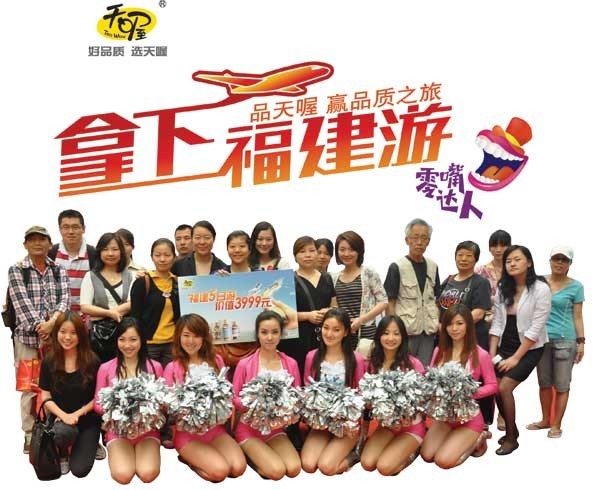 “天喔蜜饯是中国最早获得“中国驰名商标”的蜜饯品牌。天喔蜜饯这次推出了‘拿下福建游’主题活动,在卖场、超市、便利店购买天喔蜜饯活动促销装,就可以在产品罐内获得刮奖卡一张,即有机会获得‘3999元福建五日游旅游基金’,中奖者多达66位哦。”