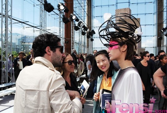 Louis Vuitton大秀当日,尚雯婕以一袭中国新锐时装设计师于惋宁特为其量身定制的几何长裙亮相红毯。该造型大量运用到中国水墨画的晕染技艺,以黑白渐变为主线,动用顶级的丝绸锦缎,配合代表宇宙万物重生概念的黑金头饰,点缀独具中国气质的兰花花束。而华谊重金邀请的法国知名化妆师Jean Paul为其打造了欧洲人眼中的中国时尚彩妆,运用了中国传统京剧脸谱的概念。尚雯婕惊艳造型亮相红毯的一刻,来自全球的数百家时尚媒体便将镁光灯全部转向了这位“华语时尚女王”。据尚雯婕透露,她还在秀场遇到曾在中国相识的法国加鲁出版集团出版人Jalou夫人及《L''OFFICIEL》杂志全球编辑总监Benjamin。