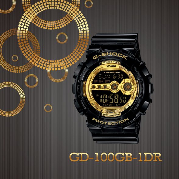 作为今夏最受人注目的GD-100系列表款,这次也在黑金系列新品中作出全新尝试。GD-100GB-1DR在表圈、表盘等位置用上金色点缀,让全黑的GD表款显得非常大气,耀眼光辉闪动,超大表盘配备超强全自动LED背光,外型帅气利落。防震,200米防水,世界时间(48个城市),秒表(精确到1/100秒)等功能一应俱全。