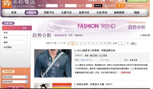 在POP服饰流行前线网站(www.pop-fashion.com)首页快捷导航版块,和童装、女装、男装等专区一样,设有毛衫专区。客户除了可进行手动输入和关键词检索外,可以直接进入该专区平铺式浏览或改专区各版块栏目进行浏览。而此次毛衫专区网站的上线,为迎合广大毛衫行业客户群体的资讯需求做出了更贴心的完善与更到位的服务。POP服饰流行前线无疑进一步成为业内资讯用户的宠儿。