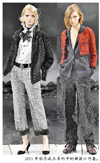 没有衬里的轻柔外套、精工缝制的袖子、丝质上衣、金色链条、围裹式双片裙、让双手空出的菱格纹肩背包、使脚型显得小巧的黑头平底双色鞋、外套上的珠宝纽扣和服装前面一连串的装饰纽扣等等,这就是“香奈儿风格”,它证明了:“怎么穿衣服”比“穿什么衣服”更重要。事实上,随着时代并进的实用性才是香奈儿风格延续的最主要原因。