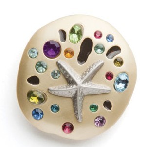 Lindsay Phillips 金色 2011春夏新款镶彩色水晶海星拖鞋配饰