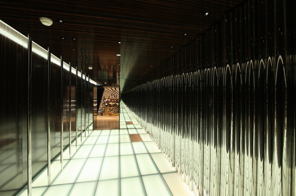 最上层是I.T专门店的所在位置,和I.T Men一样虽以黑和木色为主,但设计方面却渗透出极为不同的格调,以充斥著弧形设计的墙身、陈列挂版等营造了女性一样的完美线条。金、银和白色的墙身带点倾斜角度,把整座希慎道1号I.T占地最广、高达8341平方尺的I.T有条理地间格起来,而上面设有一排排的陈列挂板摆放著精致新装,带出一种高贵又别致的型格。下方铺设的雅色木地板由5种不同图案相间地排列著,与天花通空的光面白色板互相对应,创作出细腻时尚韵味。专设的鞋部位於正中央位置,地面用上大型灯箱地板,而摆放鞋子的椭圆形间板层架均可转动,极具高贵特色。优雅精致之极的设计带来最顶级的购物体验。