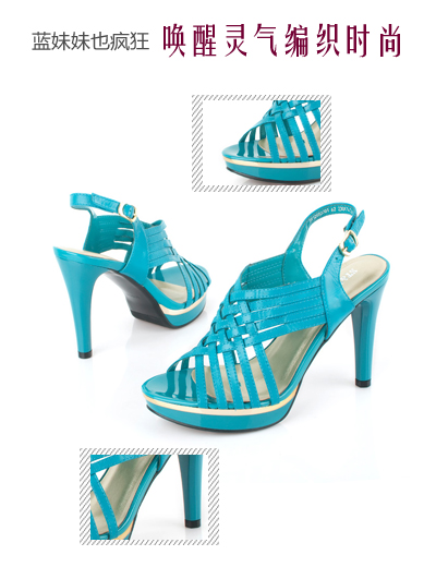 蓝妹妹是格格巫制造出来的一道迷惑,她身上充满了男人向往的女性天真,流行天后Katy Perry的声音演绎,更为动画人物增添一缕诱惑。首映礼上,Katy Perry身着印有蓝妹妹图案的抹胸短裙,性感又充满灵气的装扮划出一阵清凉sexy夏日风。ST&SAT的这款高跟鞋恰好以编织设计突出了夏日3D视觉,帆船蓝的色调在来回萦绕的线条中编织出一段沁人的视觉,柔软简单的线条被运用得惟妙惟肖,将编织的艺术蔓延至脚踝之上,在交叉环绕中相互结合,丛林影像复古呈现,鞋底配上一抹清新白色,诱惑指数一再飙升。
