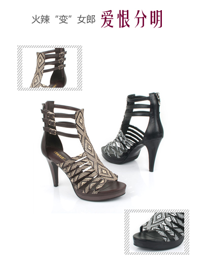 变3中,罗茜性感丰唇火辣出镜,穿一双性感利器——高跟鞋,正邪对峙,尽显“变”女郎坚毅勇敢,爱恨分明。现实感情世界里,也需要这样一份不拖沓的决心,将念念不忘的爱情记忆变成一份珍藏的美。ST&SAT在这个夏天建造了一个罗马时尚帝国,有着让人一不小心就会坠入迷恋的危险高度,蟒纹、几何图腾这些充满个性的元素融入在罗马原生态中,发出野性的呼唤,三环踝带和后包跟的精心设计又使骨感线条中透着些许舒适,3D角度展现女人魅力,在线条萦绕间倾泻性感。