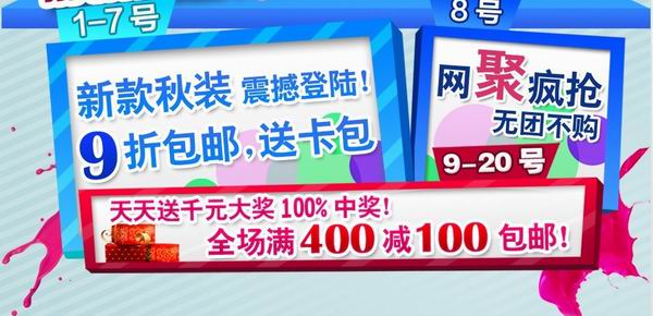 笔者了解到,此次Kappa淘宝官方旗舰店2周年店庆活动(http://kappa.tmall.com/view_page-148527040.htm?prc=1)从9月1日开始至9月20日结束,将持续20天的时间,期间会举办三波促销活动。参加促销的商品主要以新款秋装为主打,全场优质正品秋装全部9折起,并且买满就送礼包卡,优惠幅度令人咋舌,迅速点燃了消费者的秋季购物热情。