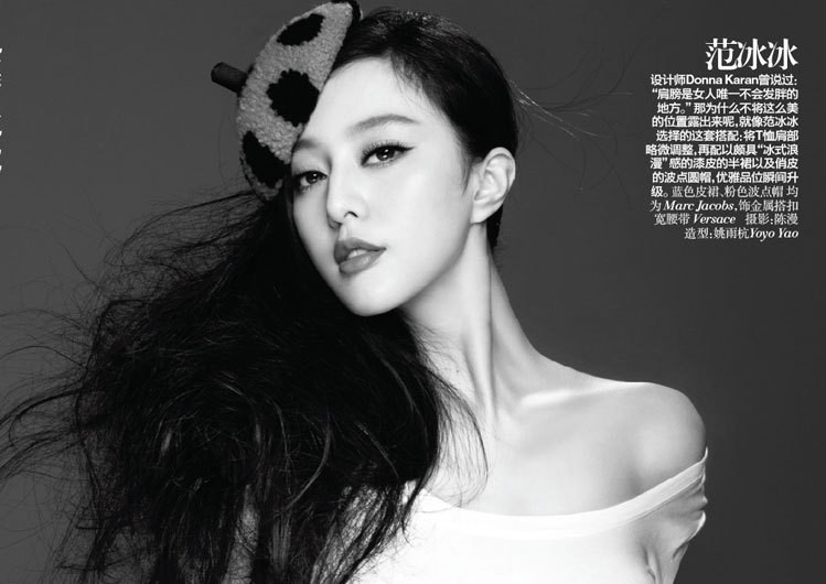 设计师Donna Karan曾说过:“肩膀是女人唯一不会发胖的地方。” 那么为什么不将这么美的位置露出来呢。就像范冰冰选择的这套搭配将T恤肩部略微调整,再穿上印有“冰式浪漫”的漆皮的半裙以及调皮的波点圆帽,优雅品味瞬间升级。