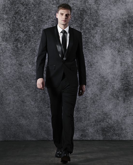 阳光服饰这一款西服礼服套装的设计主题为Cité(西堤岛)之恋,采用一粒扣、青果领缎面搭配,青果领的拼接丝素绉段的礼服款。收腰的版型即时尚又立体,增加了穿着视觉的层次感和空间感,后开衩设计则增添了精英男士纤长优雅的气质。