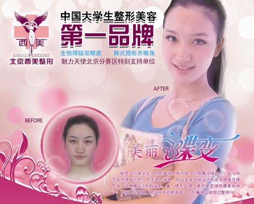“魅力天使”国际空姐大赛华北赛区,有幸得到了北京西美整形医院的倾力赞助。西美带着成为中国大学生整形美容第一品牌的美丽愿望,最早在大学校园里做起“大学生就业形象指导制定单位”,帮助过无数即将踏入社会,心怀美丽梦想,仅仅因为一些外在对梦想不利因素的影响,导致梦想受阻的男孩女孩们。