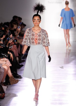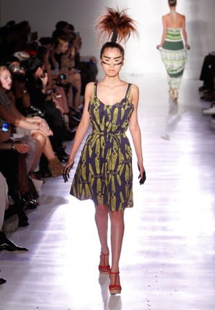 采访后,走秀正式开始。两人与来自美国、澳大利亚、德国等世界各地的名模一起,演绎北欧芬兰着名设计师「印地安夏日」(Indian Summer)风情,设计师的服装在两人的东方面孔演译下,别具风情。