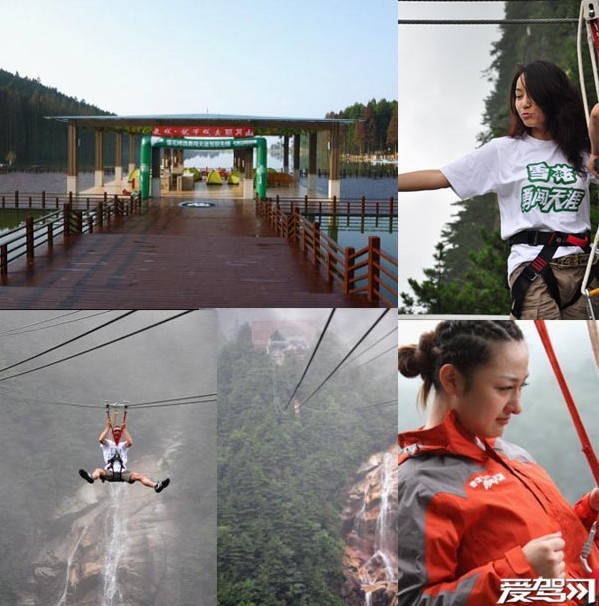 第一个任务是挑战明月山滑索,通过滑索到达对面山峰取得今天拉力比赛目的地任务书。据明月山工作人员介绍,明月山滑索海拔1580米,横跨两个山峰之间的峡谷,跨度350米,纵深550米,滑动速度大于10米/秒,非常惊险刺激。各位选手也是表现不一,有尽情享受的,有“大鹏展翅”的,当然也有失声痛哭的。