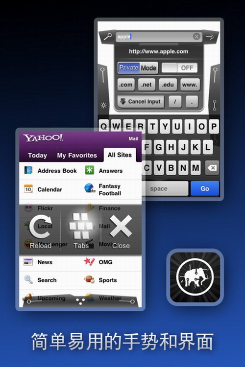 惊人效果的动画,还可以手势操作,一个手势可以访问任何收藏。