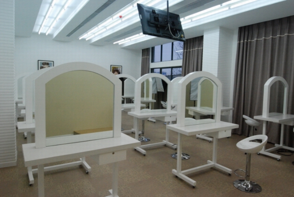 600多平米的空间内设有产品展示区、彩妆教室、大中型培训教室、休闲吧区,环境舒适雅静。尤其化妆教室宽敞明亮,大屏幕显示器连接摄影机,将彩妆过程的每个步骤每个细节一一投射呈现,让每位学员都能清楚看到老师的化妆技法。休息区的设立让学员在此实现愉快轻松的学习,闲暇时增进彼此交流,共同分享。