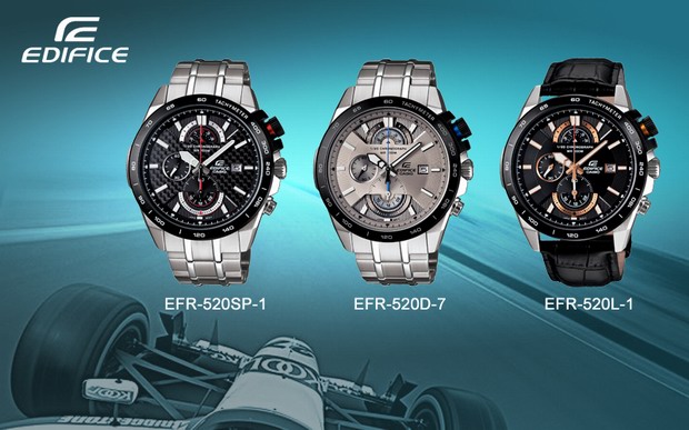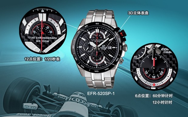 在今季推出三款最新EDIFICE腕表EFR-520SP-1、EFR-520D-7和EFR-520L-1,通过3D立体表盘、创新材质、秒表计时,以及各种为挑战极限和冒险而设计的功能,日渐显示了其在腕表设计领域不可或缺的分量。