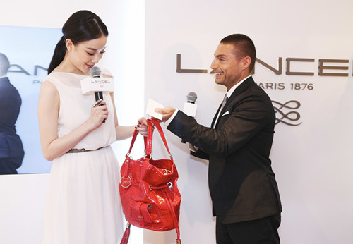 Lancel品牌艺术总监LeonelloBorghi向倪妮赠送限量的PremierFlirt水桶包