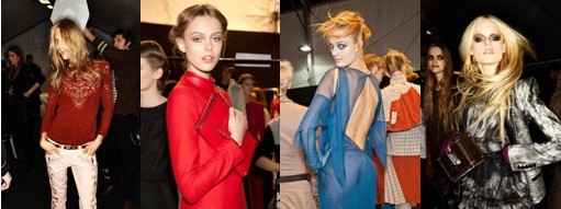图为:2012年国际秀场后台名模们的发型风采依然抢镜