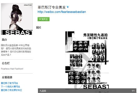 图为:塞巴斯汀专业美发官方微博正在举办的“个性发型九连拍”