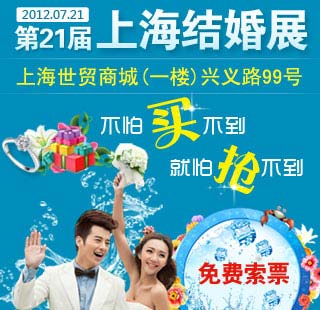 据悉,由国内第一结婚门户——久久结婚网主办的第二十一届上海结婚展,将于7月21日在世贸商城举行。
