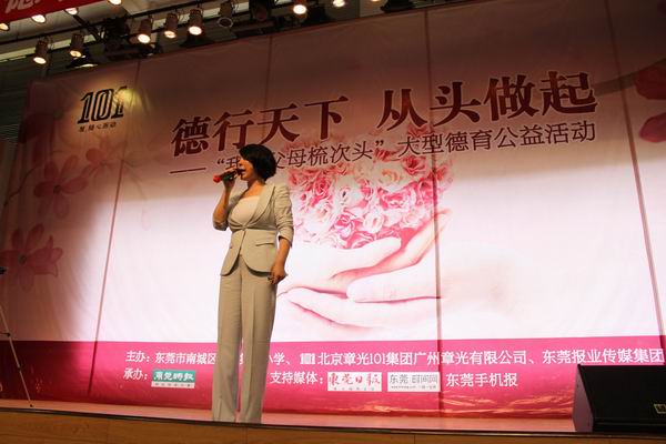 2012年5月26日上午,东莞南城阳光二小内洋溢着浓浓亲情,“德行天下 从头做起”德教活动再次感动了在场的900多人。“德行天下,从头做起 ——我为父母梳次头”亲子德教公益活动是由章光101和东莞报业集团携手东莞南城阳光二小共同举办的,承办方《东莞时报》呼吁全社会加强关注青少年的德育修养,培养优质德行人才。据了解,这次活动是章光101继2006年9月10教师节启动后第二次在广东举办,也是广东省的第32场公益活动。作为活动的全程策划、赞助方章光101,将“以德为魂,悬壶济世”作为企业宗旨,恰恰吻合了德行教育活动的主题。章光101欣然把企业灵魂与青少年道德教育相结合,投入人力物力,倡导德行天下,唤起每个人心底的“德”,在现场架起一座父母与孩子情感大沟通的桥梁。