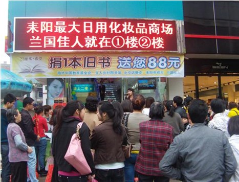 在诺曼姿销售经理赵经理对“22厘米希望”活动主题阐释之后,捐书活动正式开始,现场的人有序地走向写有“爱心捐书站”字样的字牌前,纷纷将已经准备好的书郑重其事地交到了兰国佳人的员工手中,员工们一边忙着登记造册,一边将已经准备的感谢礼物发送给前来献爱心的人们。