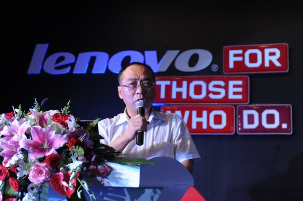 联想四川分区总经理袁树新在ThinkServer新品发布现场发表讲话