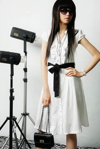搭配亮点:太阳眼镜点燃酷感印象,而衬衫式连衣裙文雅气质不可忽视。