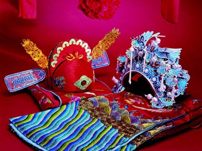 14.进洞房:新人一起坐在预先垫有新郎长裤的长椅上,谓两人从此一心并求日后生男。不准有任何男人进入洞房。(进洞房要选订时辰)