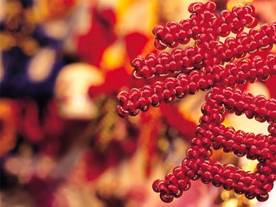 在烟袋上装饰一个“蝴蝶结”,“蝴”与“福”谐音,寓意福在眼前,福运迭至。大年三十晚上,长辈用红丝绳穿上百枚铜钱作为压岁钱,以求孩子“长命百岁”,端午节用五彩丝线编制成绳,挂在小孩脖子上,用以避邪,称为“长命 缕”。本命年里为了驱病除灾,用红绳扎于腰际。所有这些都是用“结”这种无声的语言来寄寓吉祥。中国人在表达情爱方面往往采用委婉,隐晦的形式,“结”从而义不容辞的充当了男女相思相恋的信物,将那缕缕丝绳编制成结,赠与对方,万千情爱,绵绵思恋也都蕴含其中。梁武帝诗有“腰间双绮带,梦为同心结”。宁代诗人林逋有“君 泪盈、妾泪盈,罗带同心结未成,江头潮已平”的诗句。一为相思,一为别情,都是借 “结”来表达情意。 至于结的表意价值,历代文人墨客有大量生动的描写。纵观中国古代诗词歌赋, 从中我们不难发现,绳结收已超越了原有的实用功能,并伴随着中华民族和繁衍繁衍壮大,生活空间的拓展,生命意义的增加和社会文化体系的发展而世代相传。