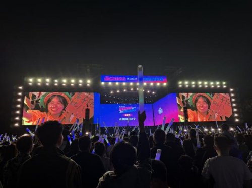 音乐节会场,一块醒目的 “不莱玫×黄子弘凡”应援大屏持续闪耀在场馆核心区域,成为现场乐迷瞩目的焦点。大屏以充满活力的视觉设计,将品牌时尚调性与代言人的青春形象深度融合,在吸引粉丝纷纷打卡的同时,也实现了品牌信息的广泛触达,营造出强烈的现场归属感与粉丝凝聚力。