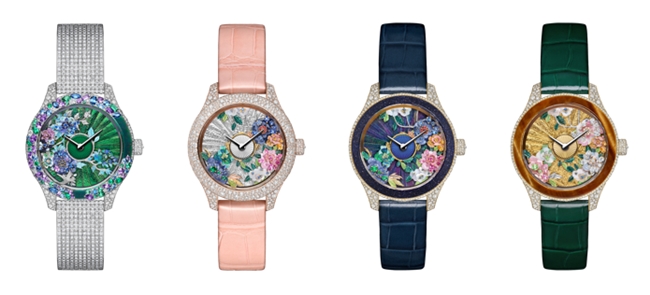 迪奥于Grand Bal系列推出Jardin Parisien高级腕表新作,以精妙工艺重现克里斯汀•迪奥(Christian Dior)位于巴黎儒勒•桑多大街的私人公寓中冬日花园的华美挂毯,将织物上的繁复花纹化为腕表上的宝石盛宴。铁线莲、牡丹与大丽花在深浅交织的绿意中渐次绽放,以璀璨宝石织就一幅瑰丽诗篇。