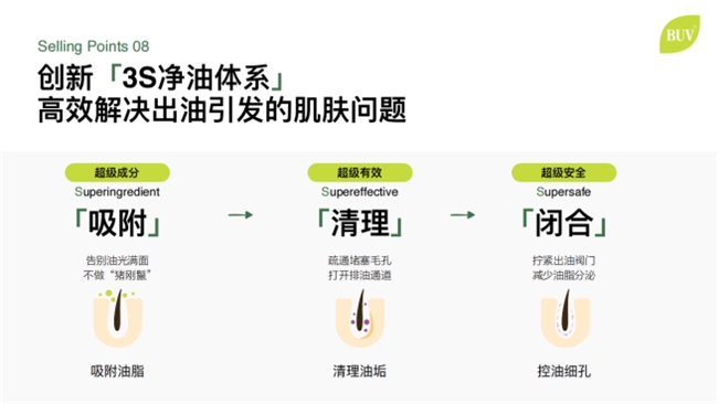 BUV的产品力支撑,源于其对油性肌肤问题的深度研究与技术创新。品牌独创的「SVP植物超分子净油精萃」专利技术,通过生物提取高活性植物成分,构建起“吸附—疏通—控油”三步净油体系,从源头抑制皮脂腺过度分泌,打破反复出油的恶性循环。