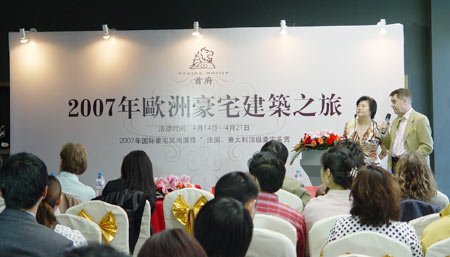 由PEKING HOUSE首府 主办的“欧洲豪宅建筑之旅”活动在其接待中心内拉开了帷幕,国际顶级的建筑设计群意大利法威尔和法国米多芬的着名建筑师一一到场,为嘉宾奉上了一场精彩的欧洲建筑风尚演讲。