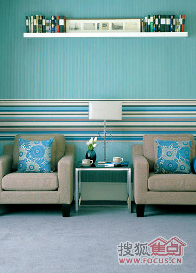 造型师建议:横向的条纹壁纸可能会使房间在视觉上变矮,没关系,只需将装饰层板的固定位置向上抬高,错觉就会消失。