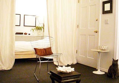 用洁白的帘子将空间卧室区和交流区的分割,格调清新。