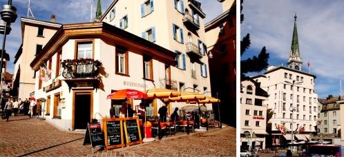 圣莫里茨是欧洲贵族最热衷的度假圣地,城区并不算大,依着山体的轮廓建在湖边,因此道路曲折,低矮的独栋小楼沿山而上,错落有致,房子大多为白色和浅黄色,每一个窗口都生长着颜色鲜艳的花。偶尔也会有几栋颜色鲜艳或造型别致的建筑夹杂其间,别有风情。露天咖啡馆或餐厅散布在小城之中,三三两两的客人散坐在椅子上晒太阳。圣莫里茨少雨,一年有300天以上都沐浴在阳光下,让整座小城散发着迷人的光辉。
