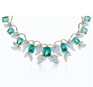 如果说珠宝是女人最无法抵抗的极致奢华,那么彩色珠宝便是令人爱不释手的珍品,这些代表着珠宝界最高工艺的时尚艺术品,以绚丽缤纷的晶莹姿态,迷倒了众多女性。 树叶造型项链,天堂之鸟别针, 孔雀项链,海蓝宝石和镂花珐琅耳坠 ,这些创意的绝色珠宝都来自蒂芙尼Tiffany &Co.2009年全新系列。蒂芙尼用绚丽无比的彩色宝石,雕刻出一件又一件让女性疯狂的珠宝。