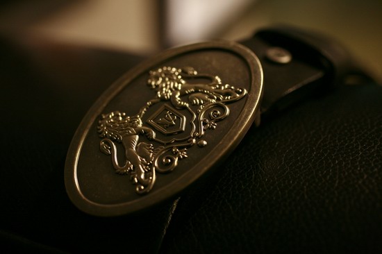 法兰西风格的圆形徽章VJC皮带扣,采用了欧洲先进的电镀和抛光工艺,通过夸张的比例体现男人的个性,皮带采用轧花漆皮和亚光牛皮结合,更体现拥有者的不凡品位。